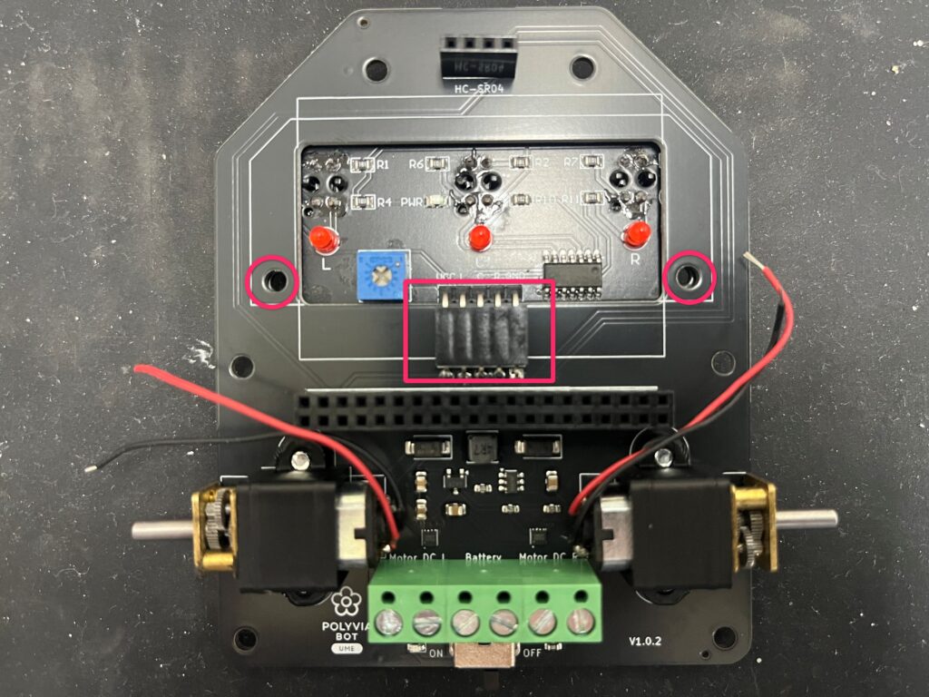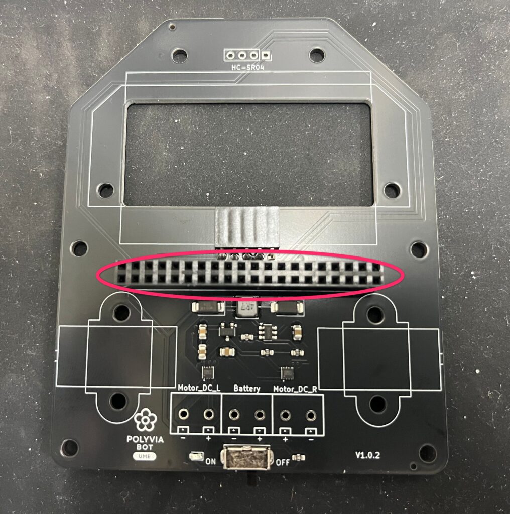 PoliviaBot UMEでは、 コネクタ類や一部電子部品を自分ではんだ付けして完成させます。