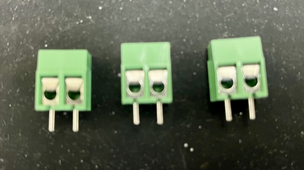 取り付ける前に3つのターミナルを連結します。下の図のように、左右に突起と凹みがついており、差し込むことで連結できます。