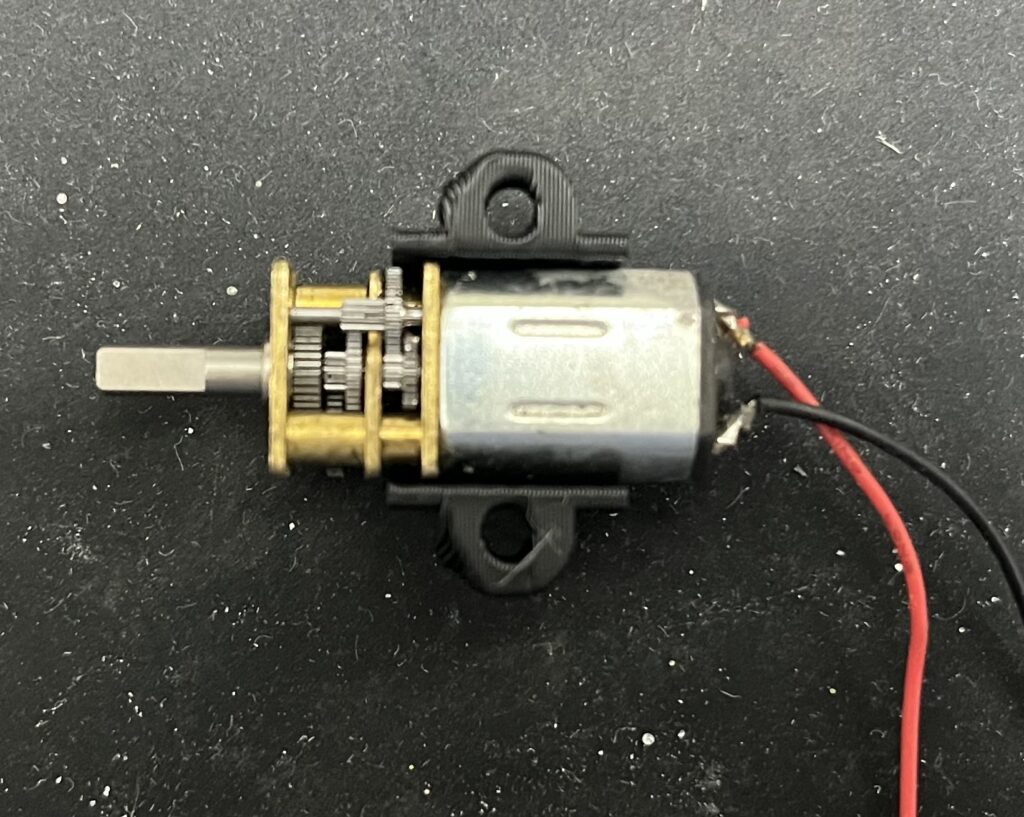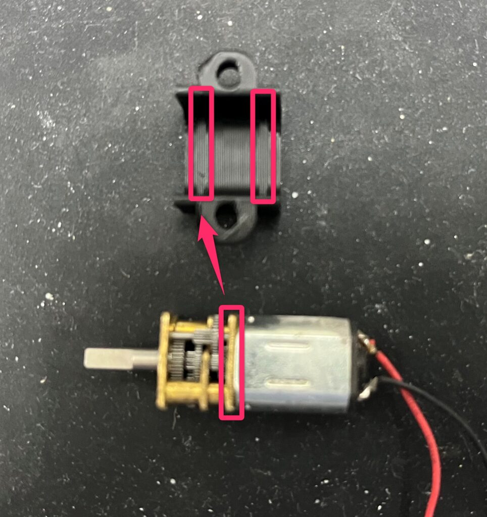 マウントにはスリットが2か所入っており、スリットがモータのギアボックスの根元にはまるように押し込みます。