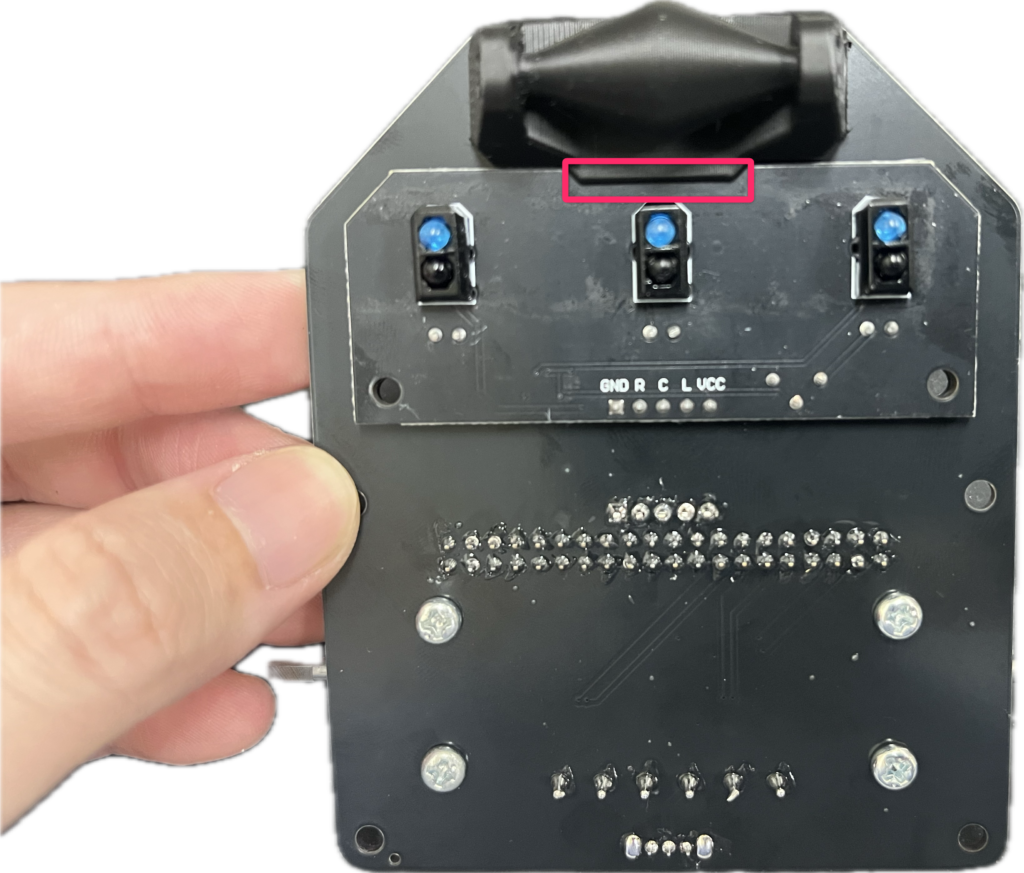 突起部分でラインセンサー基盤を挟み固定します。