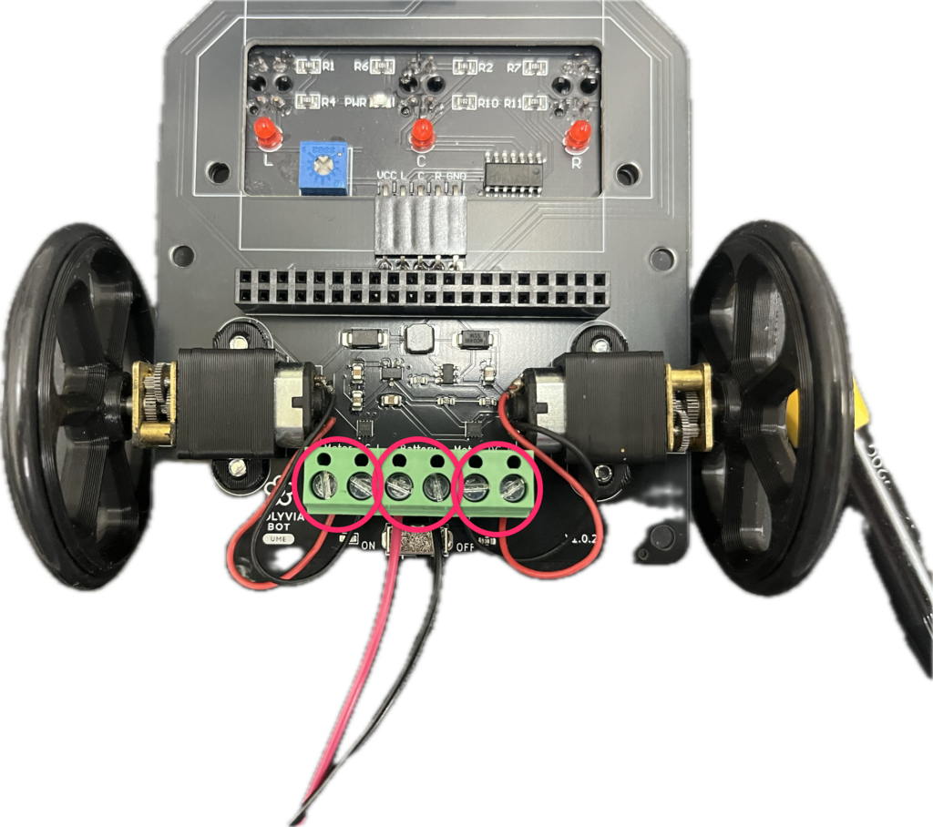 モータと電池BOXの配線を行います。