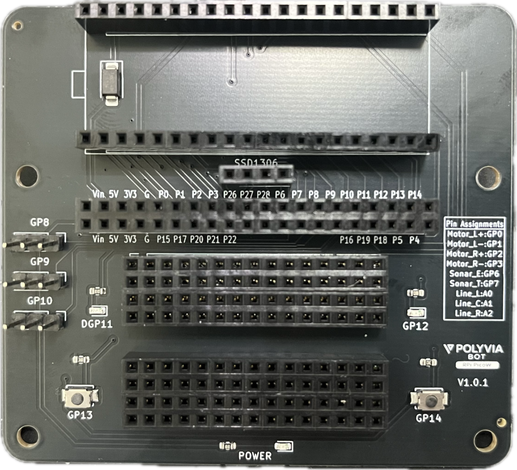 上部基盤は使用するマイコンによって違います。下記はRaspberry Pi Pico用の基盤です。