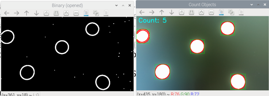※ぼかし(GaussianBlur)や形態学的処理(オープニング)を加えると、検出漏れや誤カウントがぐっと減ります。