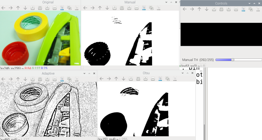 # C↑:全体的に暗めのしきい値になり、黒が増える(白い物体が減る)