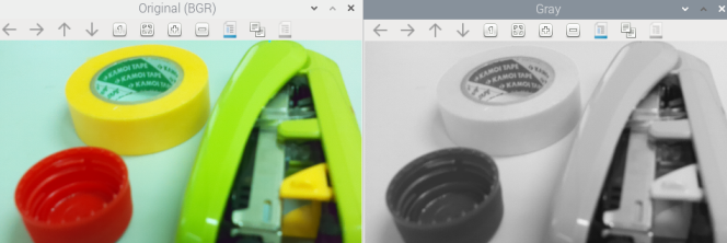 これは OpenCV が内部で各ピクセルの明るさを計算して変換しています。