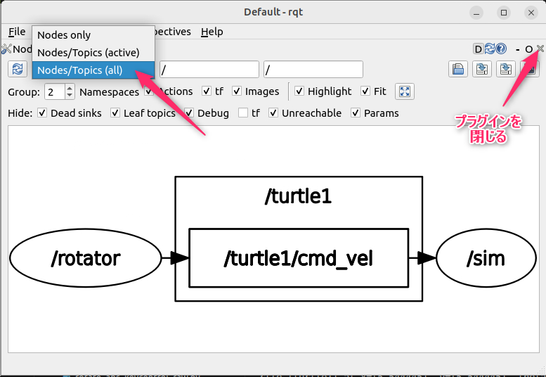 この状態でrqt_graphを使ってみましょう。