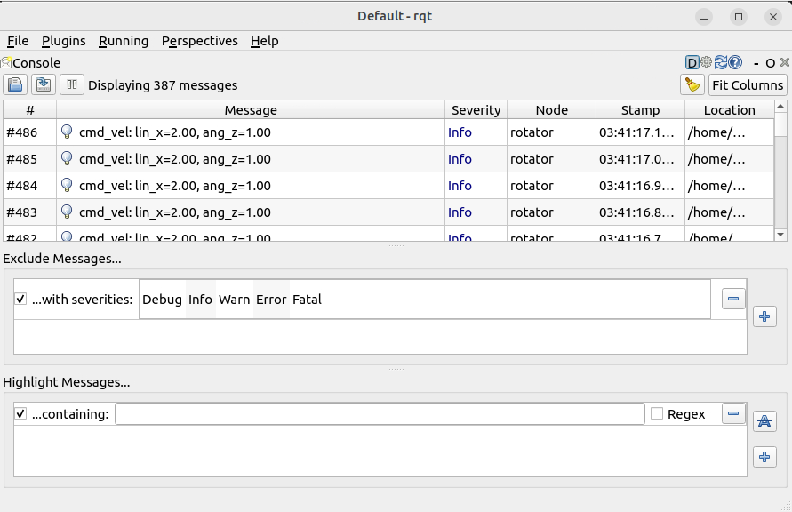ros2 run rqt_console rqt_console